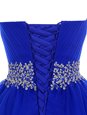 Eye-catching Royal Blue Sleeveless Beading Mini Length Evening Dress