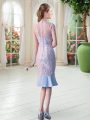 Eye-catching Satin High-neck Short Sleeves Zipper Lace Prom Dress in Pink