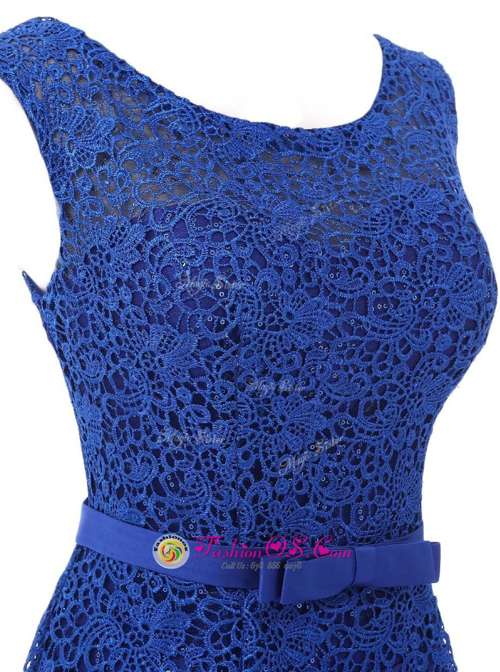 Eye-catching Scoop Sleeveless Lace and Belt Zipper Dress for Prom