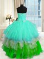 Eye-catching Sleeveless Lace Up Floor Length Beading and Ruffled Layers 15th Birthday Dress