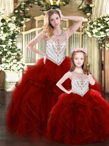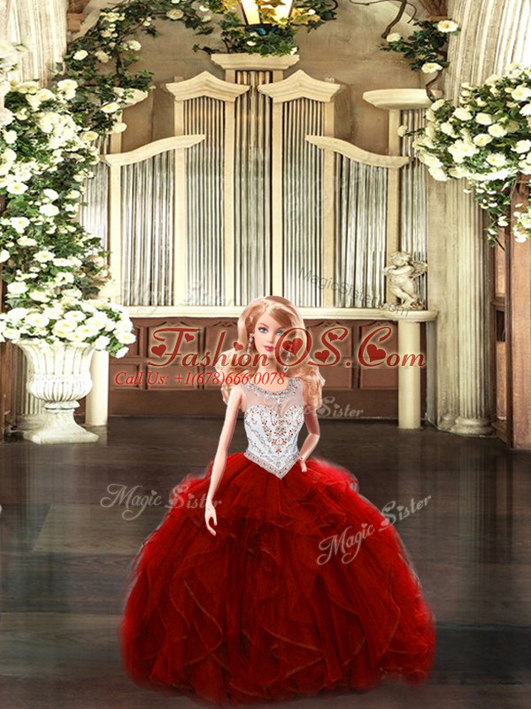 Eye-catching Sleeveless Lace Up Floor Length Beading and Ruffles Quinceanera Dress