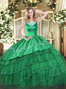 Eye-catching Sleeveless Organza Floor Length Side Zipper Quinceanera Dress in Turquoise with Beading and Embroidery and Ruffled Layers