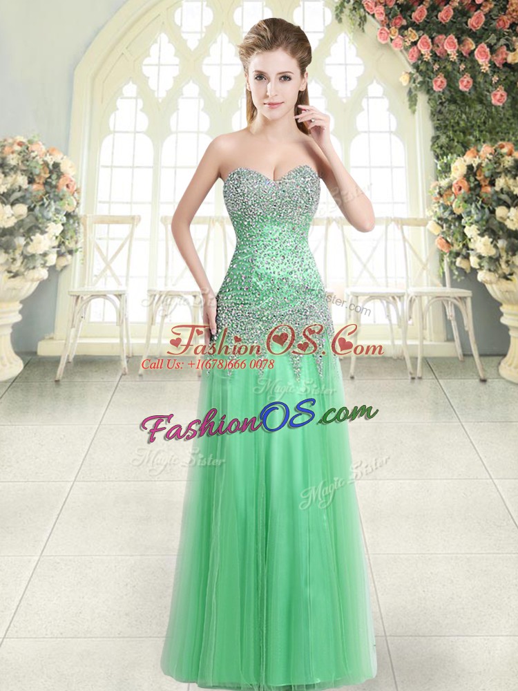 Eye-catching Sleeveless Tulle Floor Length Zipper Prom Evening Gown in with Beading