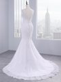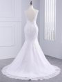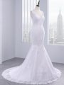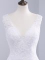 Eye-catching White Backless Wedding Gowns Lace Sleeveless Brush Train