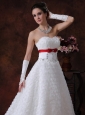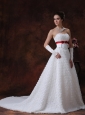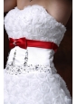 Fabric With Rolling Flower Sweetheart Wedding Dress A-Line Bowknot Brush With Beading