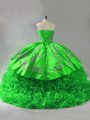 Fabric With Rolling Flowers Lace Up Sweetheart Sleeveless Quinceanera Dresses Brush Train Embroidery and Ruffles