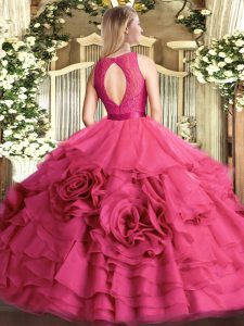 Home >  Quinceanera Dresses >  Perfect Quinceanera Dresses > Fabric With Rolling Flowers Scoop Sleeveless Zipper Lace Quinceanera Gowns in