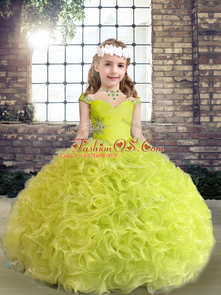 Fabric With Rolling Flowers Sleeveless Floor Length Pageant Dress for Girls and Beading and Ruffles