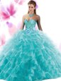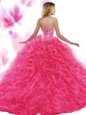 Fabric With Rolling Flowers Sweetheart Sleeveless Lace Up Beading Quinceanera Gown in Rose Pink