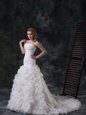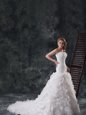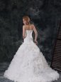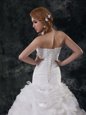 Home >  Wedding Dresses >  Elegant Wedding Dresses > Fabric with Rolling Flowers White Sweetheart Neckline Ruffles and Ruching Wedding Gown Sleeveless Lace Up