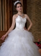 Fabulous and gorgeous! Your dream will definitly come ture in this sweetheart neckline wedding dress. The ball gown dress gives an airy feeling of your wedding. The layered organza make the dress puffy enough and the delicate applique on the bodice glam up the wedding which makes you the most happiness bride of the world!
