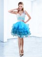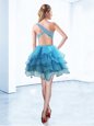 Home >  Prom Dresses >  Perfect Prom Dresses > Fabulous Aqua Blue Prom and Party and For with Beading and Ruffled Layers One Shoulder Sleeveless Criss Cross