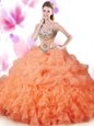 Fabulous Blue Sweetheart Neckline Beading and Ruffles Quince Ball Gowns Sleeveless Lace Up