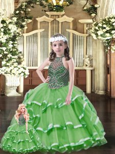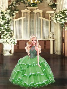 Fabulous Floor Length Green Quinceanera Gown Halter Top Sleeveless Lace Up