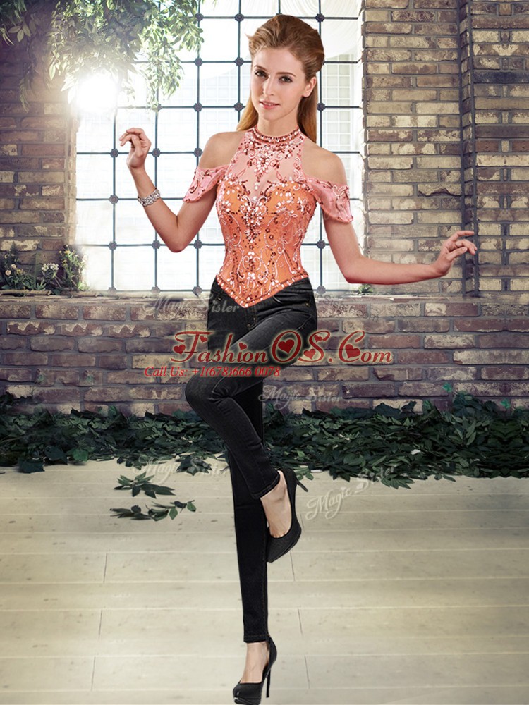 Home >  Quinceanera Dresses >  Detachable Quinceanera Skirts > Fabulous Floor Length Orange 15 Quinceanera Dress Organza Sleeveless Beading and Ruffles