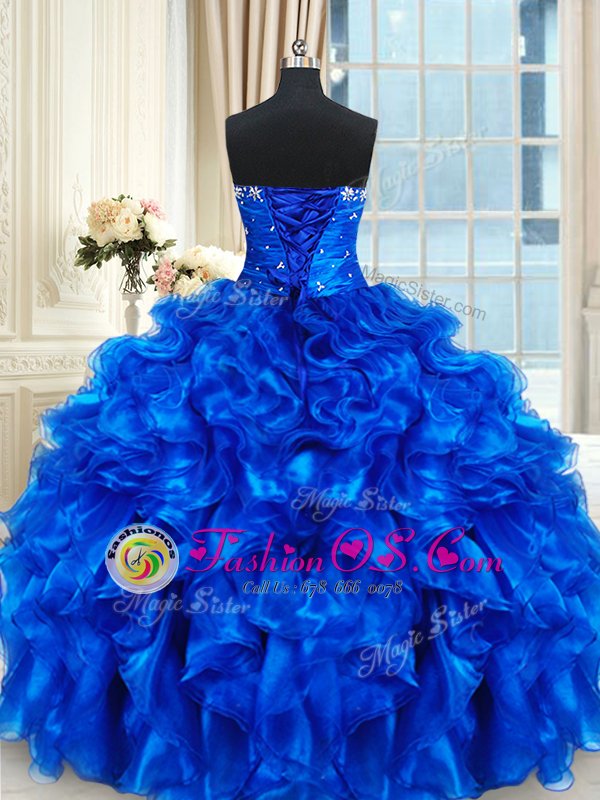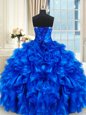 Fabulous Four Piece Royal Blue Sweetheart Lace Up Beading and Ruffles Quinceanera Gowns Sleeveless