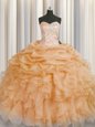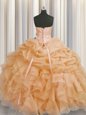 Home >  Quinceanera Dresses >  New Arrival Quinceanera Dresses > Fabulous Gold Ball Gowns Beading and Ruffles Sweet 16 Dresses Lace Up Organza Sleeveless Floor Length