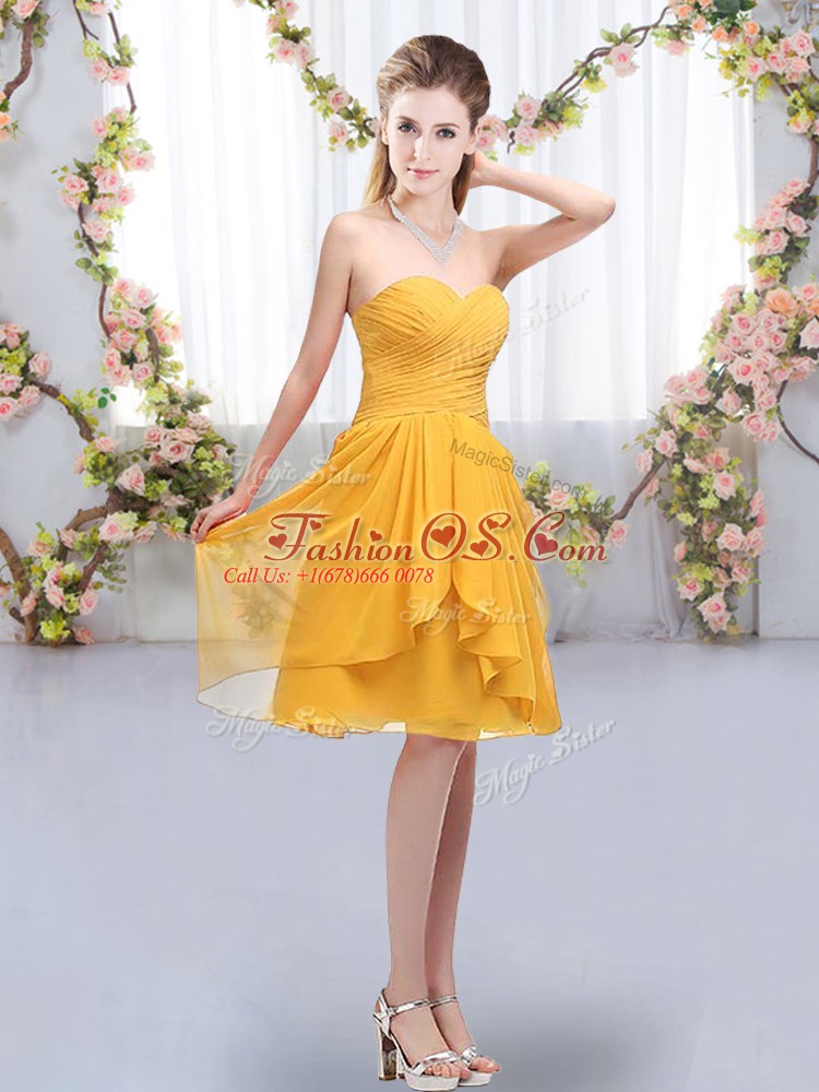 Fabulous Gold Empire Sweetheart Sleeveless Chiffon Knee Length Lace Up Ruffles and Ruching Quinceanera Court of Honor Dress