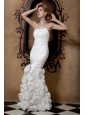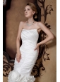 Fabulous Mermaid Strapless Hand Made Flowers Wedding Dress Floor-length Taffeta