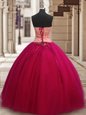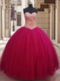 Home >  Quinceanera Dresses >  Popular Quinceanera Dresses > Fabulous Red Ball Gowns Sweetheart Sleeveless Tulle Floor Length Lace Up Beading and Appliques Quinceanera Dress