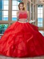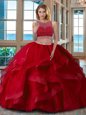 Fabulous Red Sweet 16 Dresses Military Ball and Sweet 16 and Quinceanera and For with Beading Scoop Sleeveless Zipper