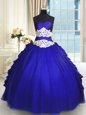Home >  Quinceanera Dresses >  Clearance Quinceanera Dresses > Fabulous Royal Blue Ball Gowns Sweetheart Sleeveless Taffeta and Tulle Floor Length Lace Up Beading and Lace and Appliques and Ruching and Pick Ups Quinceanera Dress