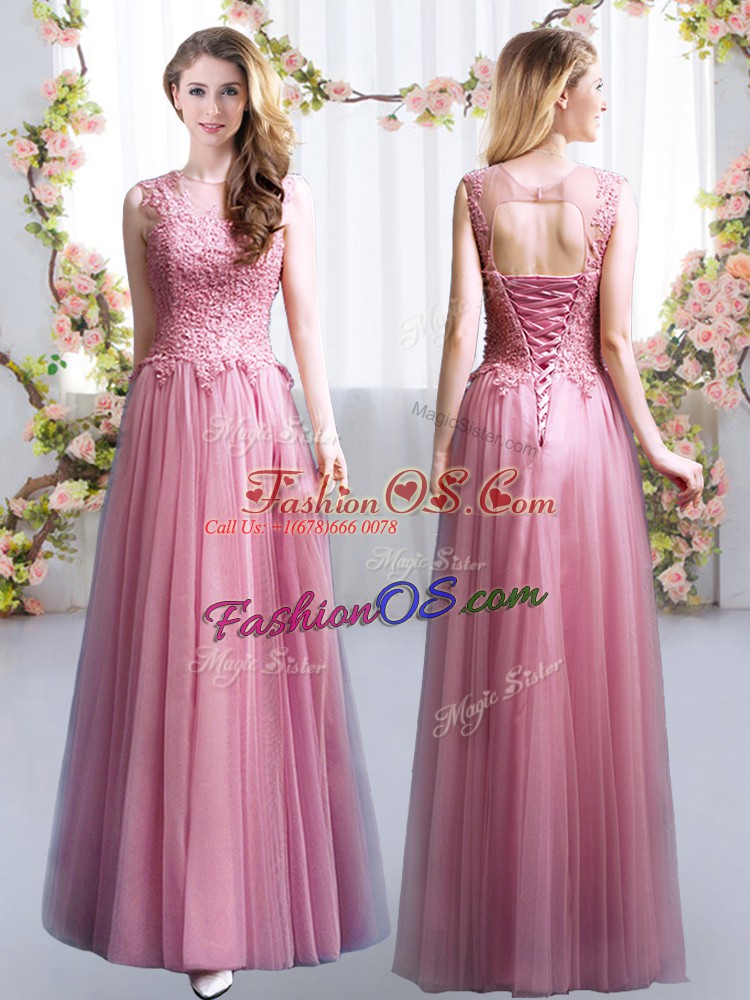 Fabulous Scoop Sleeveless Lace Up Damas Dress Pink Tulle