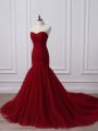Fabulous Sleeveless Court Train Ruching Lace Up Formal Dresses