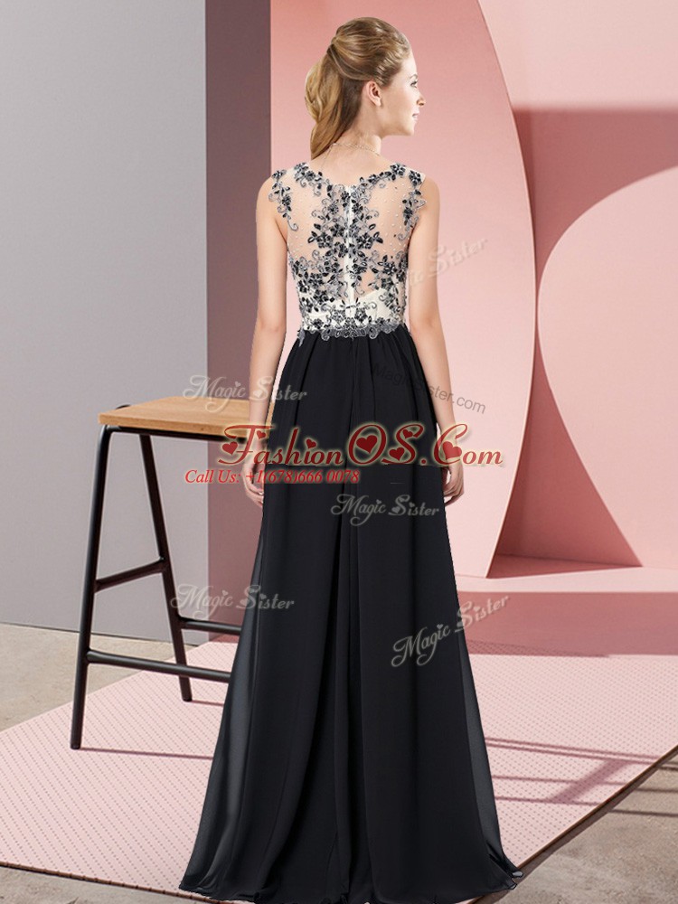 Fabulous Sleeveless Floor Length Beading and Appliques Zipper Quinceanera Court of Honor Dress with Navy Blue
