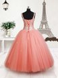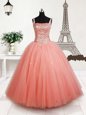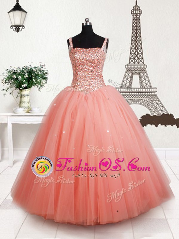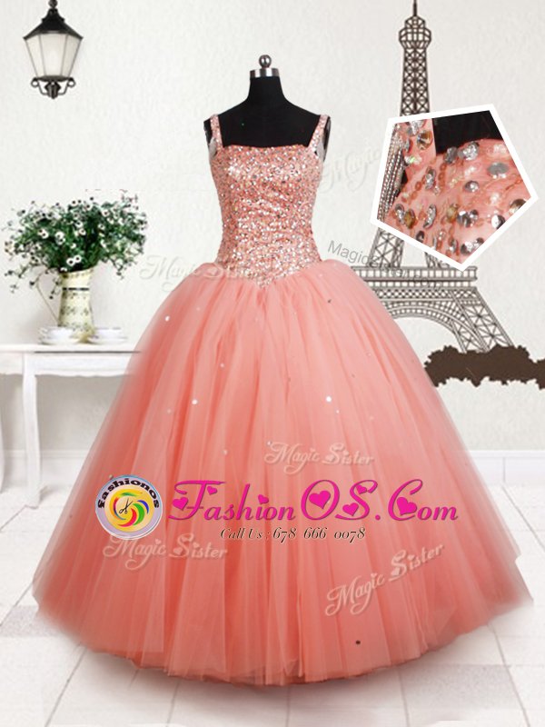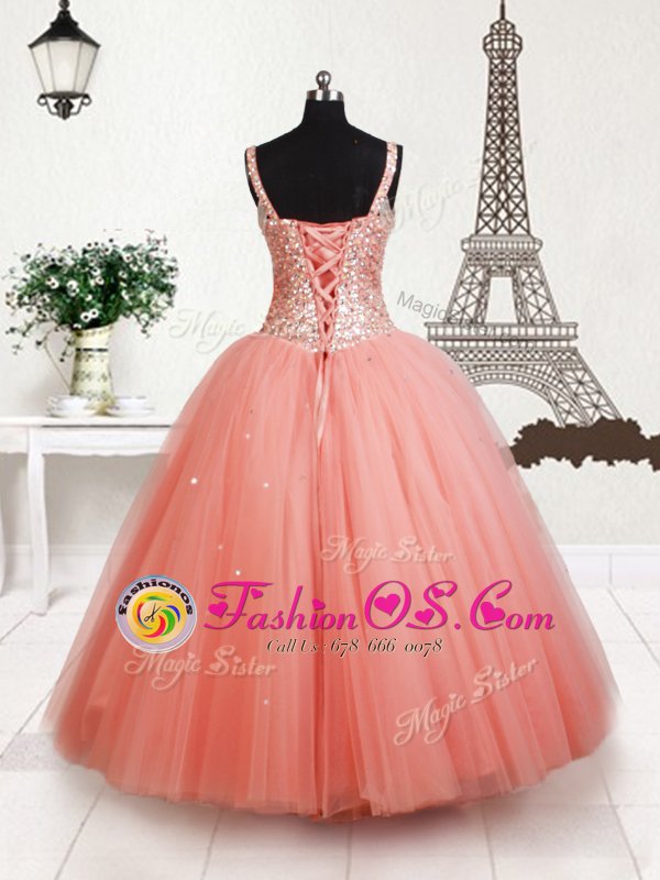 Fabulous Straps Beading Little Girls Pageant Gowns Peach Lace Up Sleeveless Floor Length