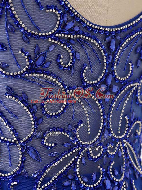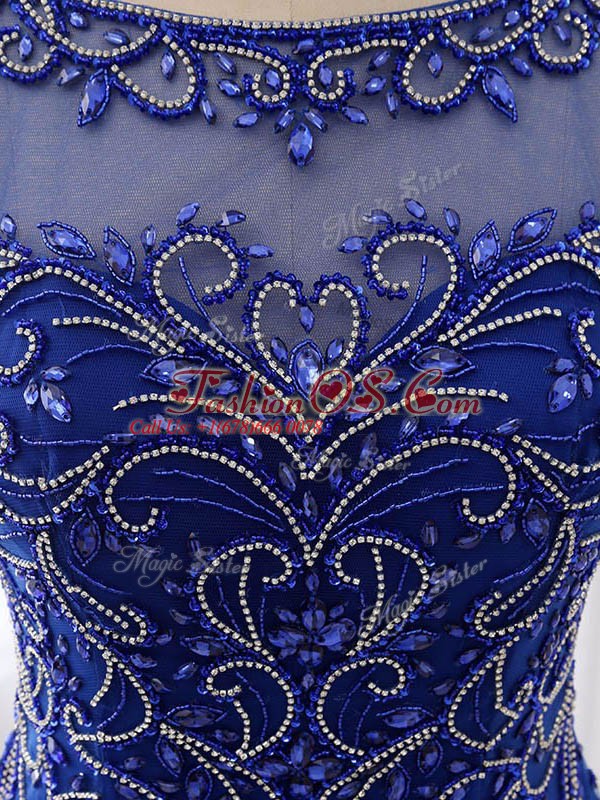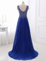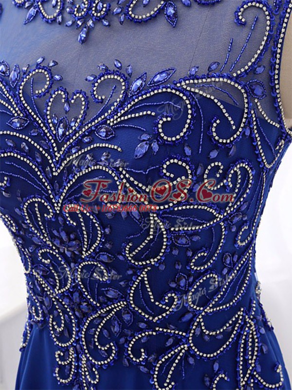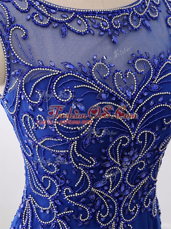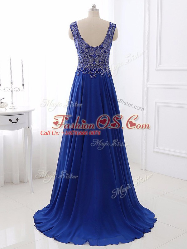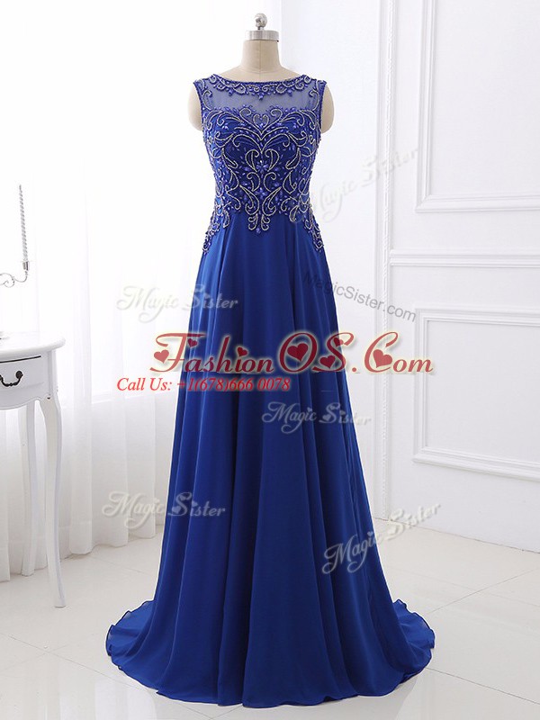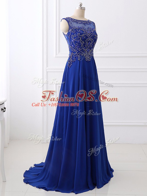 Fabulous Sweep Train Empire Prom Evening Gown Royal Blue Bateau Chiffon Sleeveless Side Zipper