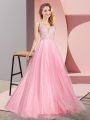 Fabulous Watermelon Red Zipper Evening Dress Lace Sleeveless Floor Length