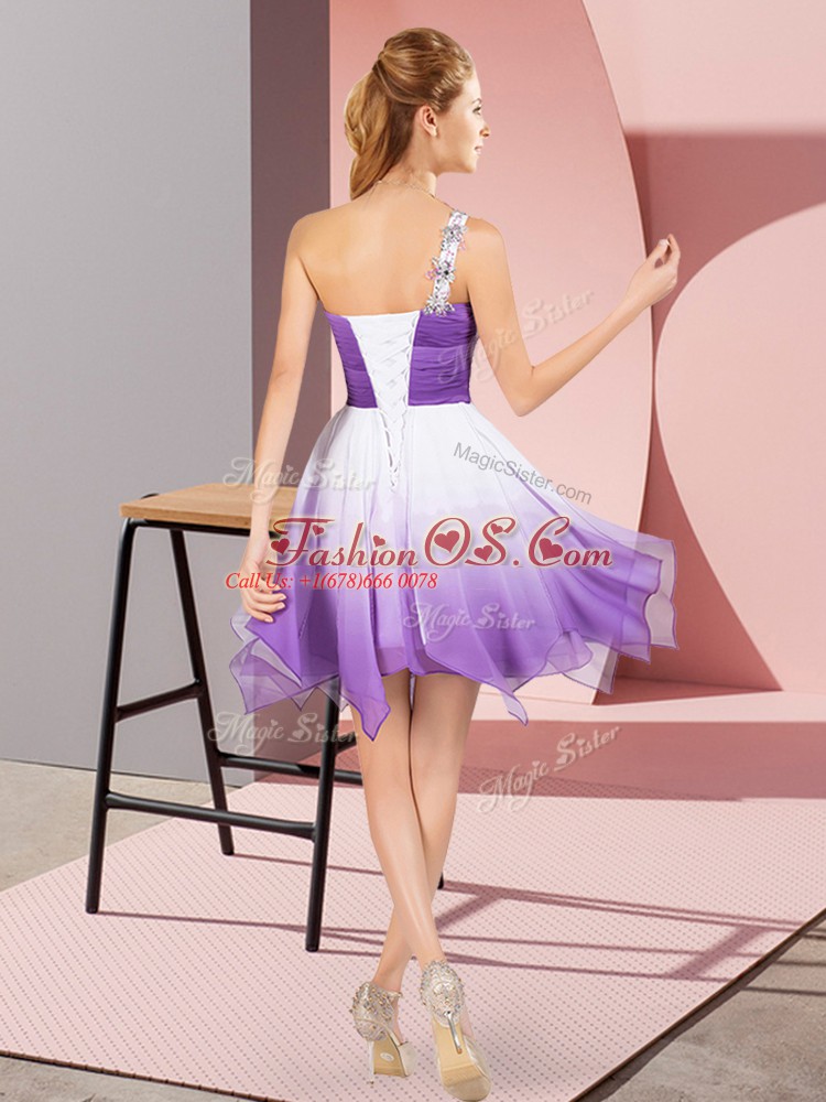 Fading Color One Shoulder Sleeveless Lace Up Beading Evening Dress in Multi-color