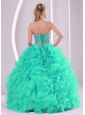 Fall Ball Gown Sweetheart Ruffles and Beaded Decorate Turquoise Pretty Quinceanera Dresses