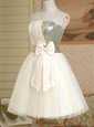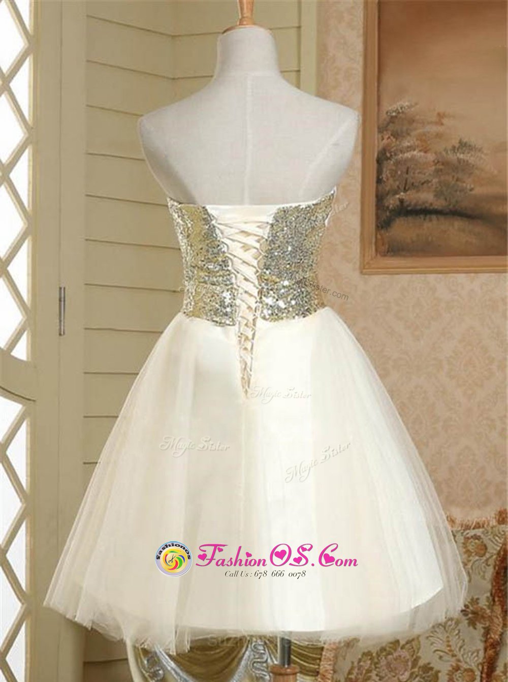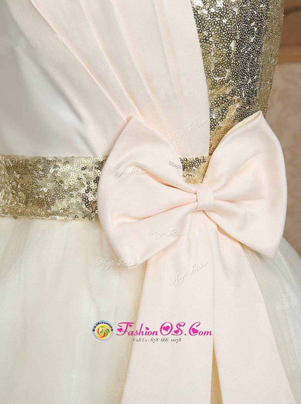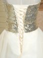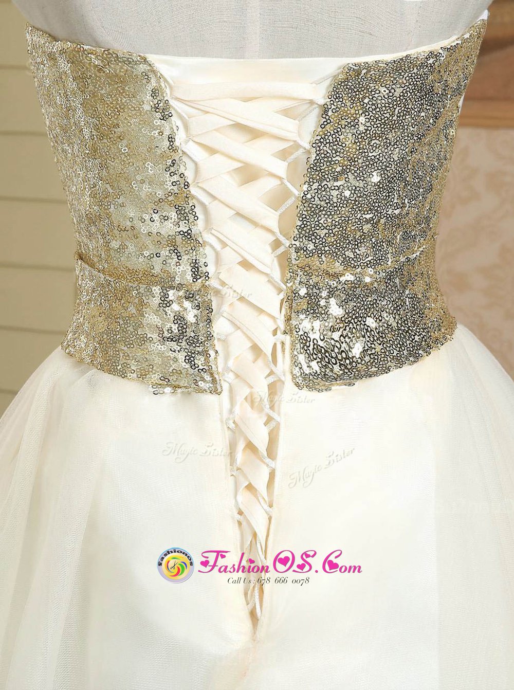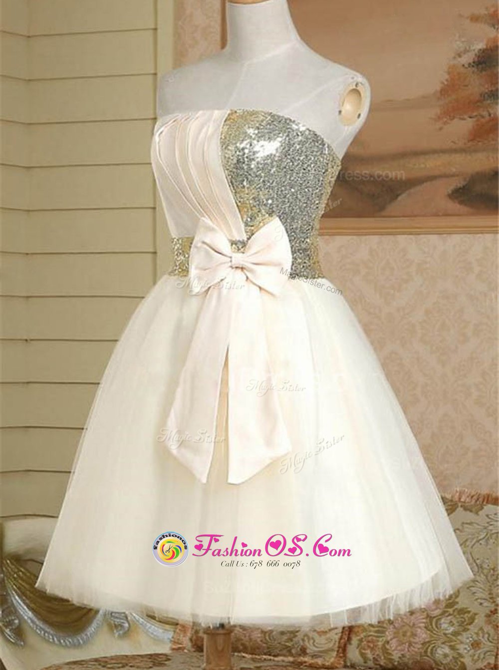 Fancy Champagne Lace Up Strapless Sequins and Bowknot Dress for Prom Satin Sleeveless