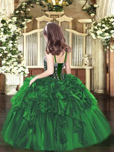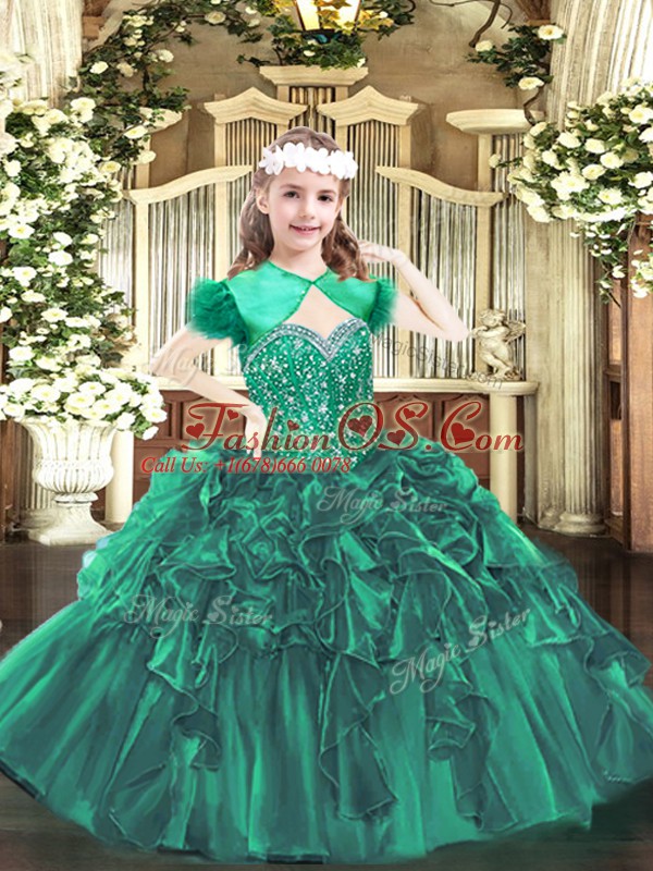 Home >  Special Occasion Dresses >  Pretty Little Girl Pageant Dresses > Fancy Floor Length Lace Up Kids Pageant Dress Dark Green for Party and Quinceanera with Beading and Ruffles
