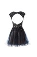 Home >  Prom Dresses >  Beautiful Prom Dresses > Fancy Knee Length Navy Blue Evening Dress V-neck Cap Sleeves Criss Cross