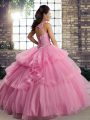 Fancy Lavender Ball Gowns Tulle Scoop Sleeveless Lace and Embroidery and Ruffles Floor Length Lace Up Quinceanera Dresses