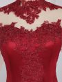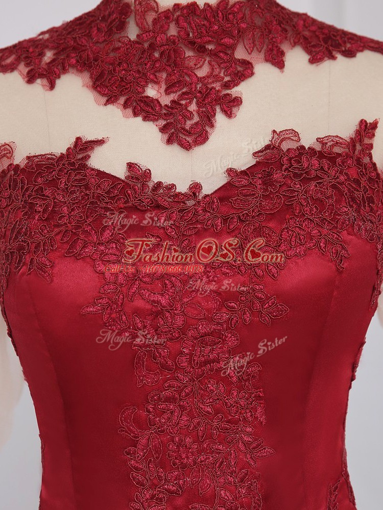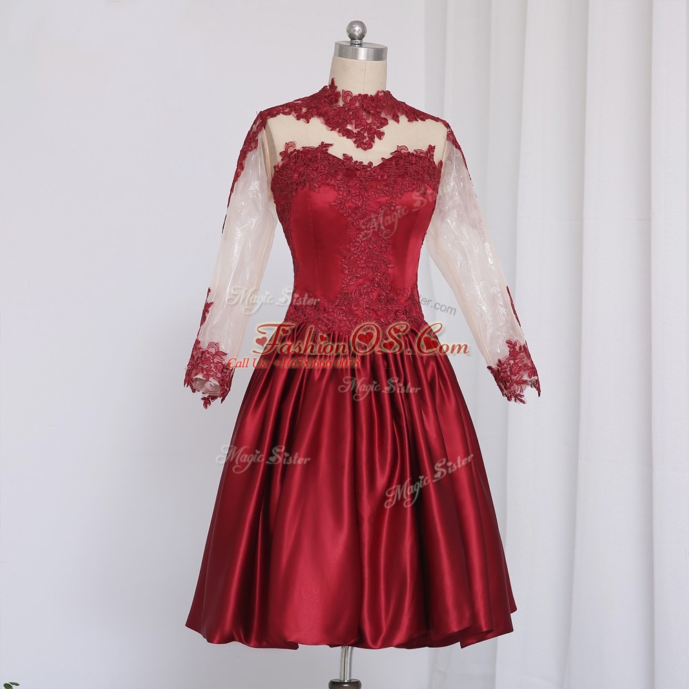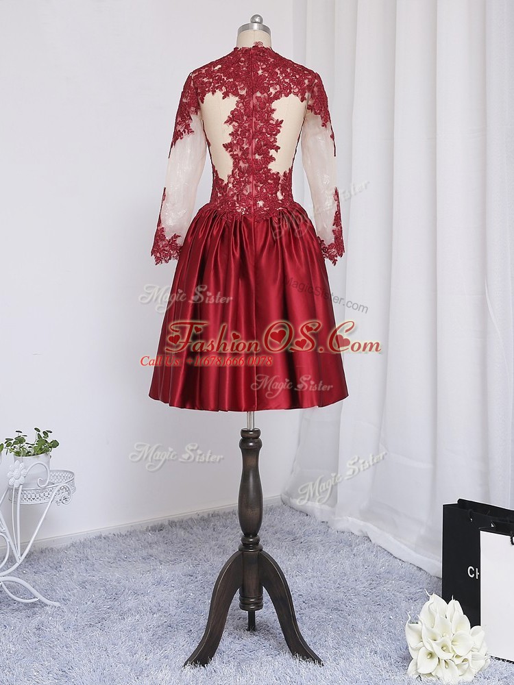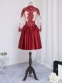 Fancy Long Sleeves Mini Length Beading and Appliques Zipper Dress for Prom with Wine Red