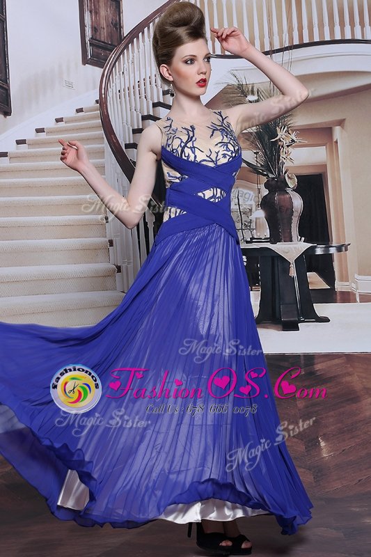 Home >  Prom Dresses >  Perfect Prom Dresses > Fancy Royal Blue Zipper Sequins and Pleated Sleeveless