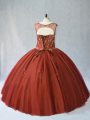 Fancy Rust Red Ball Gowns Beading 15th Birthday Dress Lace Up Tulle Sleeveless Floor Length