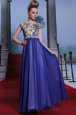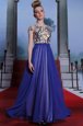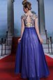 Fancy Scoop Cap Sleeves Evening Dress Floor Length Embroidery and Sequins Royal Blue Chiffon