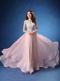 Fancy Scoop Lace and Appliques and Belt Dress Like A Star Baby Pink Zipper Sleeveless With Brush Train