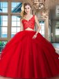 Fancy Scoop Red Backless Sweet 16 Dresses Beading and Pick Ups Sleeveless Floor Length