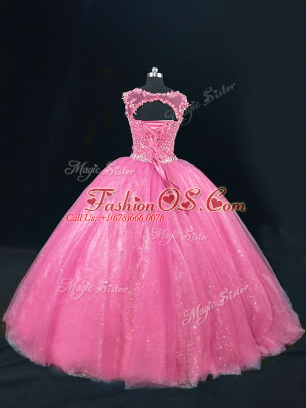 Fancy Sleeveless Beading and Lace and Sequins Lace Up Quince Ball Gowns