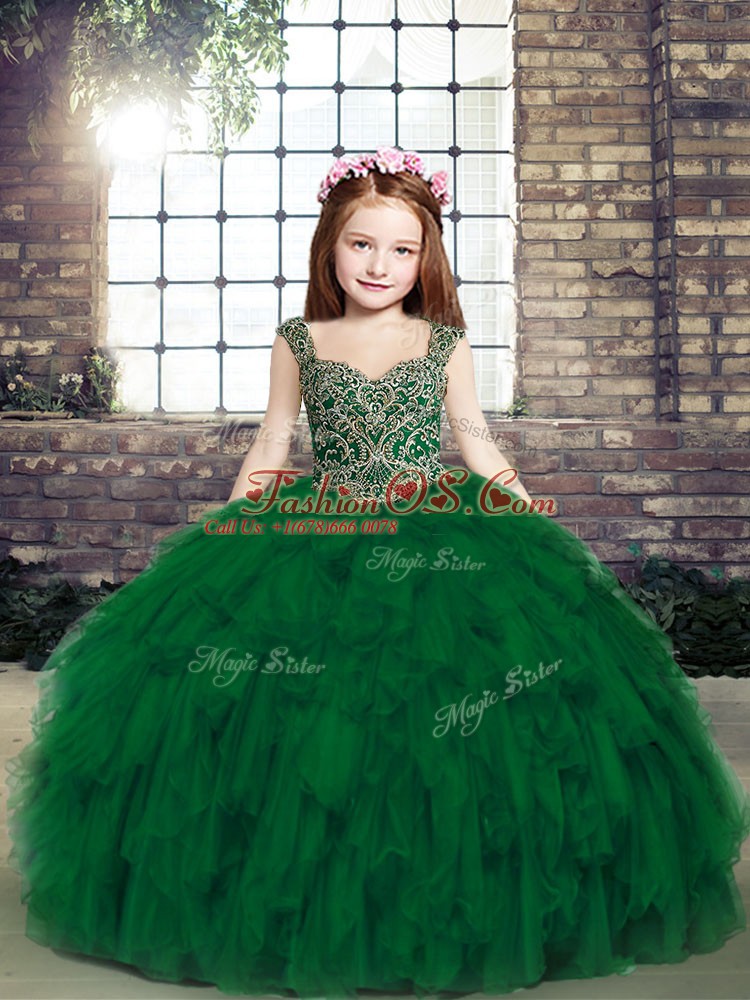 Home >  Special Occasion Dresses >  2018 Little Girl Pageant Dresses > Fancy Sleeveless Tulle Floor Length Lace Up Little Girls Pageant Gowns in Dark Green with Beading and Ruffles