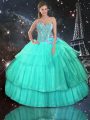 Fancy Sweetheart Sleeveless Lace Up 15th Birthday Dress Turquoise Organza