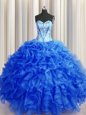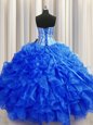 Home >  Quinceanera Dresses >  Unique Quinceanera Dresses > Fancy Visible Boning Beaded Bodice Sleeveless Beading and Ruffles Lace Up Sweet 16 Dress