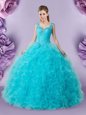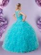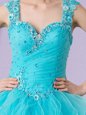 Home >  Quinceanera Dresses >  Popular Quinceanera Dresses > Fantastic Baby Blue Ball Gowns Straps Sleeveless Tulle Floor Length Zipper Beading and Ruffles Quinceanera Gowns