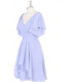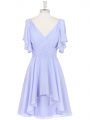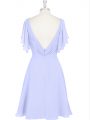 Fantastic Baby Blue Chiffon Backless V-neck Short Sleeves Mini Length Prom Dresses Ruching
